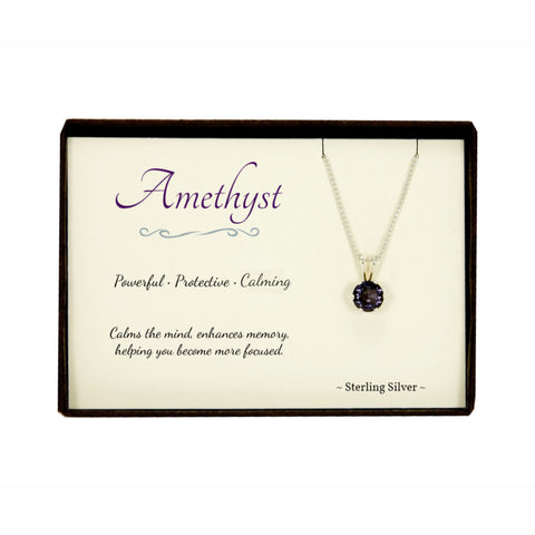 Handcrafted amethyst necklace set in .925 sterling silver pendant, February birthstone and the 6th anniversary gemstone.