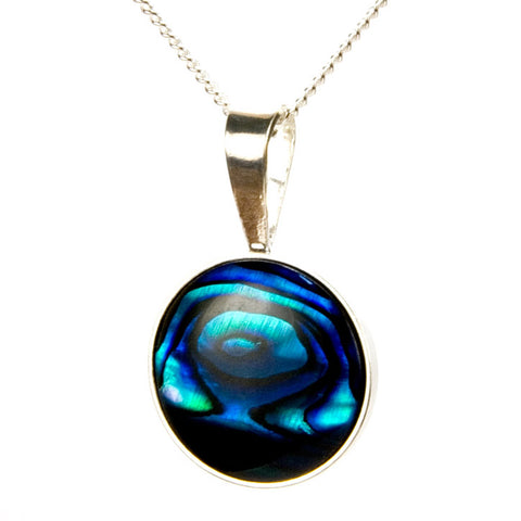 Our blue paua sterling silver pendant, displays the beautiful vibrant color variation of the paua shell inlay. Every shell has a different pattern and color, making each pendant truly unique.